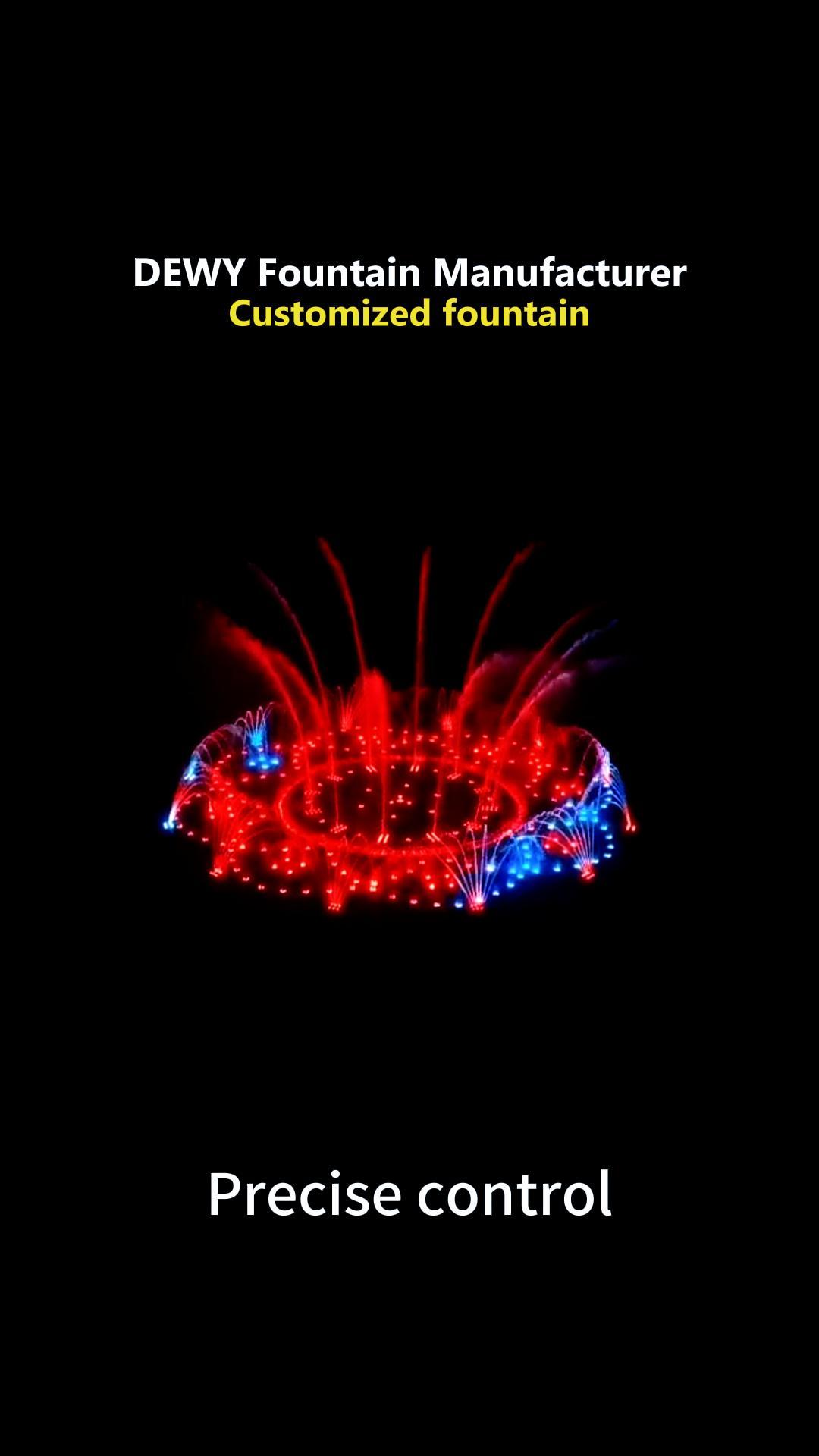 نافورة موسيقية صغيرة في البركة، منظر ليلي جميل للغاية. وهي تتألف من فوهات دوارة وفوهات على شكل بوق.
